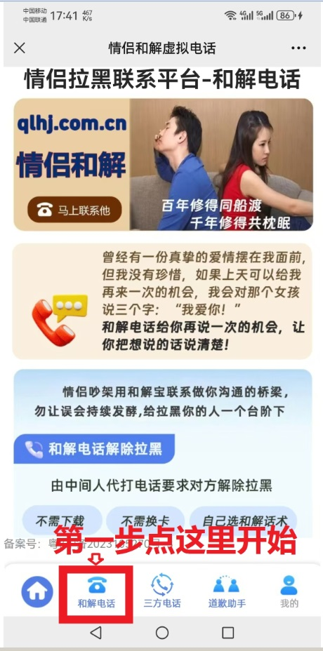 答:和解宝电话是指请和解宝人代打电话,替你跟对方说话!用我们的号码打易接通! 帮你跟对方说让对方解除微信拉黑抖音拉黑,帮你与对方和解恢复正常联系人。全程录音放给你听。比如跟对象吵架了打电话一听到声音就挂断了,根本不给你说话解释的机会,和解宝电话是被拉黑以后快速见效又实惠的解除拉黑方法! 替你表白,替你试探伴侣的忠诚度,全程录音放给你听。 代打生日祝福电话,并请来一百多位名人替你为朋友祝福生日! 更多和解宝电话的功能将会不断扩展,敬请期待--------